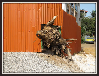 La souche était gênante, mais sans doute n'ont-ils pas d'engins pour la déplacer...